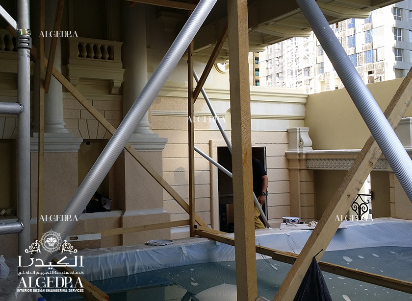 تتميز شقق البنتهاوس بالخواص الفاخرة وتركيب أرقى المواد وأحدث أنظمة التكنولوجيا وغيرها الكثير تلبية لرغبة أحد عملائنا المميزين, قمنا بتصميم المكان بطريقة تعكس رغباته بإضافة لمسة الكيدرا المميزة في عالم الرقي فبدت وكأنها قصر منيف من الداخل. اشتملت المساحة الداخلية للمكان والتي بلغت 6,409 قدماً مربعاً توزعت على صالة استقبال وغرفة نوم رئيسية وبهو واسع بالإضافة إلى المطبخ والتراس الذي احتوى على مسبح داخلي, استخدم فريقنا بالتصميم الأعمدة الرومانية الكورنثية بتيجانها المزينة تماماً كما كانت تستخدم في العصور القديمة وكان لتنفيذها المتقن الأثر الكبير في إظهار جمالها وحقيقة قدمها ولكن بأسلوب عصري, إضافت لها الإنارة مزيجاً ساحراً تلائم مع تصميم المكان المتكامل, ومما أتم جمال المشهد العام القطع التي تم تصميمها لتوصل ما بين الأعمدة الحجرية فكان منها ما يحمل شكل الشرفات الحجرية القديمة يعلوها أشكال لنقوش تحمل الطابع القديم, وأضاف إليها الزجاج بنمط الأرابيسك طابعاً خاصاً أيضاً وفي النهاية فإن إظهار الطبيعة في مكان يحمل هذا الطابع يعتبر شيئاً أساسياً فكانت أشكال الجص الحجرية الخيار الملائم لتحمل النباتات الخضراء بأشكالها البهية وزهورها الفاتنة وكان للتكنولوجيا نصيبها أيضاً بتوزيع أصوات المياه المنحدرة إلى حوض السباحة فكان تحفة بكل ما تحمل الكلمة من معنىً, ويكفينا فخراً بإتمام هذا العمل أننا نلنا رضى العميل بل وتجاوزناه أيضاً.